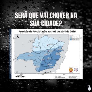 A Defesa Civil de Minas Gerais emitiu alerta para a chegada de um ciclone extratropical que deve provocar mudanças nas condições do tempo em Minas Gerais entre quarta-feira (8) e quinta-feira (9).