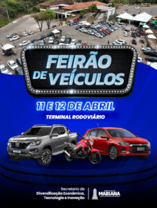 Compra, venda e troca de veículos estarão concentradas em um único espaço nos dias 11 e 12 de abril, quando Mariana recebe mais uma edição do Feirão de Veículos, no Terminal Rodoviário. O evento reunirá empresas do setor automotivo e oferecerá ao público condições facilitadas de negociação.
