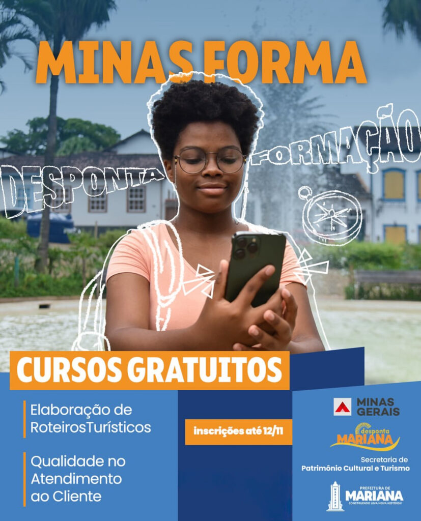 Em novembro, Mariana será palco de mais uma etapa do Minas Forma, com a oferta de dois novos cursos gratuitos voltados à qualificação profissional no setor turístico. A iniciativa integra o eixo de formação do programa Desponta Mariana, que tem como objetivo fortalecer o turismo local por meio da capacitação dos profissionais da cidade.