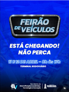 Quem pretende comprar ou trocar de veículo terá, nos dias 11 e 12 de abril, uma oportunidade de concentrar pesquisa e negociação em um único espaço, durante feirão realizado no Terminal Rodoviário de Mariana.
